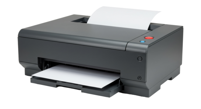 Sleek Modern Digital Printer Front View, isolated on transparent background.