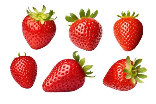 A photograph showcasing six strawberries arranged. on a White or Clear Surface PNG Transparent Background.