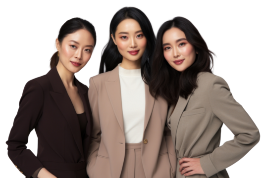 Confident woman in trench coat posing against plain background during indoor photoshoot