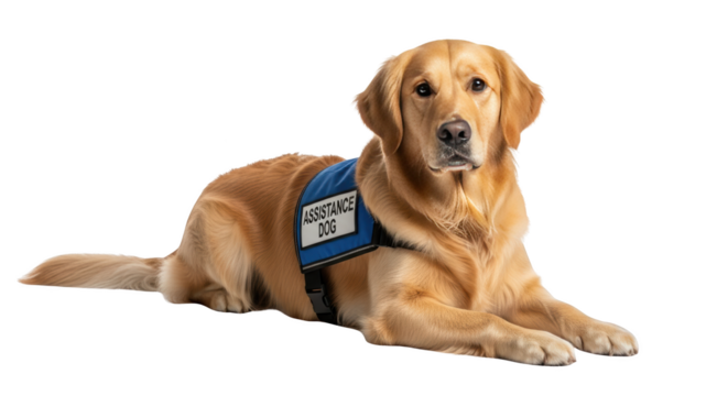 Golden Retriever Assistance Dog Lying Down creative illustration featuring companion, blue, pet, breed, support, medical alert design concept