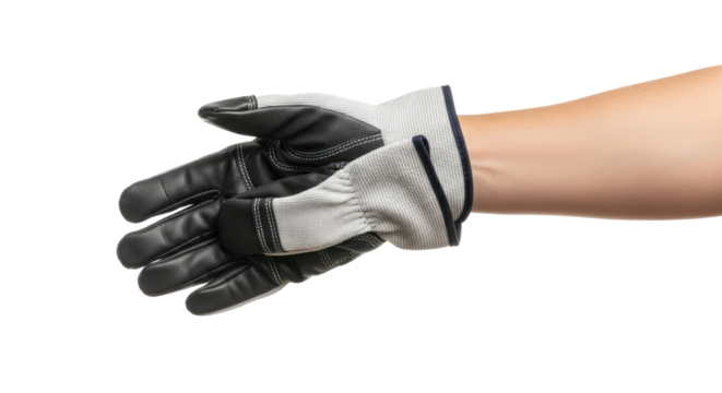 a helping hand in work gloves offers assistance, symbolizing collaboration, support, and reliable teamwork for success, isolated on transparent background