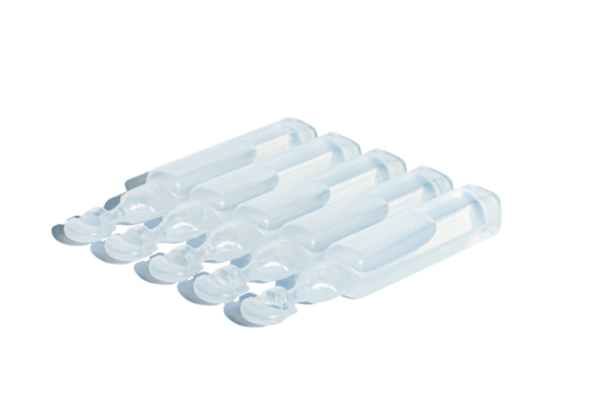 Plastic pharmaceutical ampoules with physiological fluid. Sodium chloride. Or drops. Medicine. on isolated transparent background