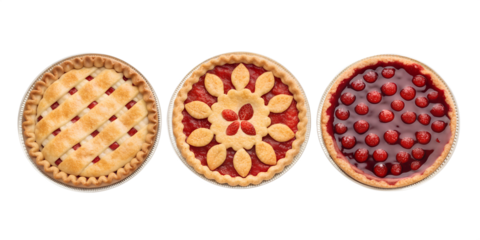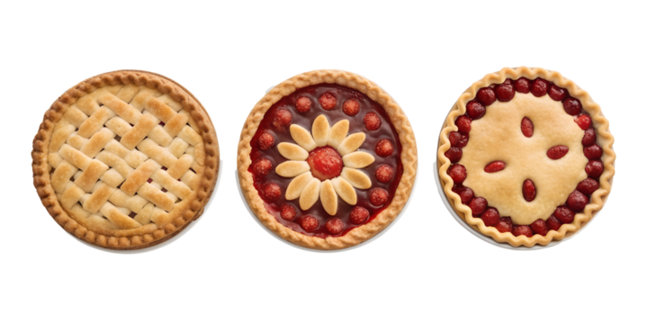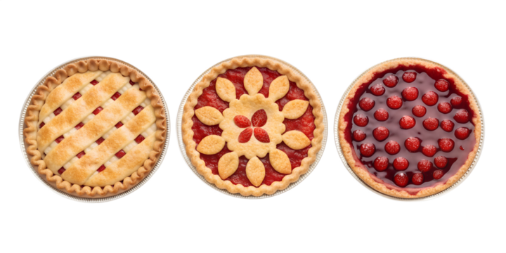 Three Different Style Pi Day Cherry Pie with a Crust on White - Classic Pie, Cherry Pie, Pi Day Celebration Dessert, Cut Out