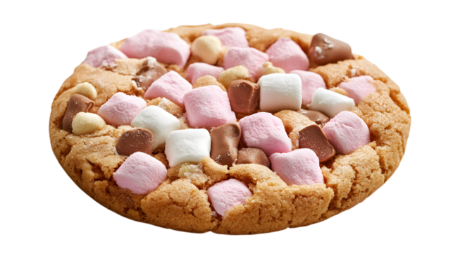 A cookie with marshmallows and chocolate chips on top