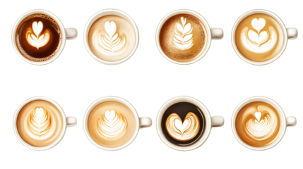Collection of Cut Out Cappuccino and Coffee Art in Cups