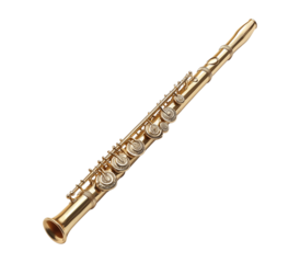 A silver piccolo isolated on transparent background, a woodwind instrument used in orchestras and bands, known for its highpitched and bright sound