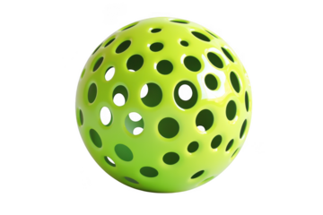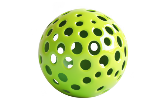 Green pickleball ball for sports and games. Sphere with holes for outdoor or indoor activity, isolated on a transparent background