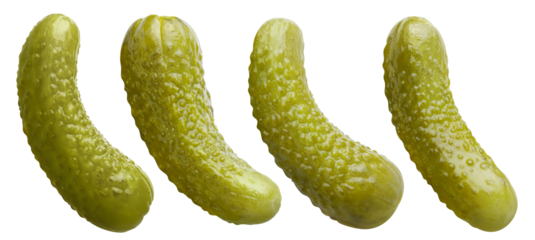 Pickles, Pickled gherkins, Preserved Marinated cucumbers vegetable, many angles and view front pile slice isolated on transparent cutout, PNG file. Mockup template for artwork graphic design