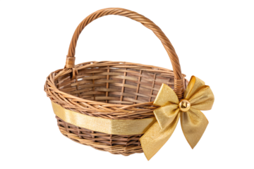 Realistic 3d rendering of an empty wicker basket with a sturdy handle, isolated on a transparent background