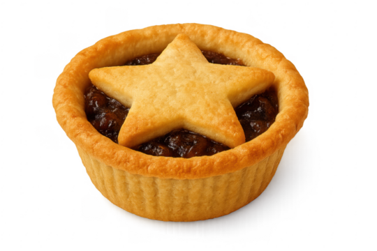 Traditional Mince Pie With Star Pastry Topping On Black Background