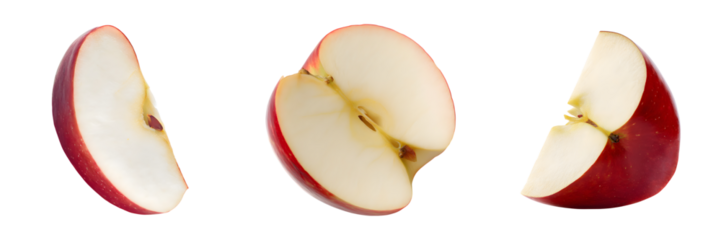 Set of red apple slices and half, isolated on transparent background