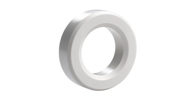 White plastic spacer ring on white background, industrial part