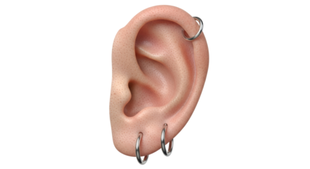 Isolated ear with multiple piercings jewelry cartilage helix tragus lobe conch and daith