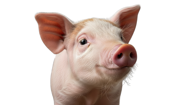 Close up portrait of a pink piglet with dirt on its face and ears against a transparent background detailed farm animal isolated studio shot
