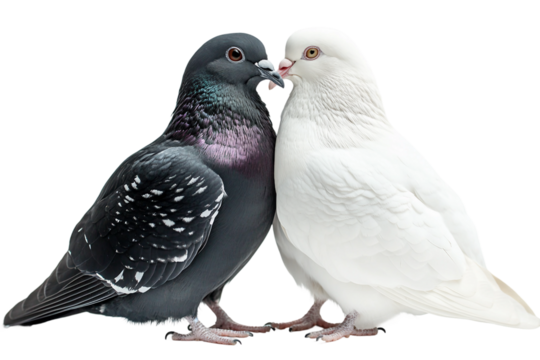 Pair of Jacobin pigeons showcasing color contrast isolated on transparent background