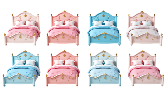 Increasing sizes of pink piggy banks on transparent background