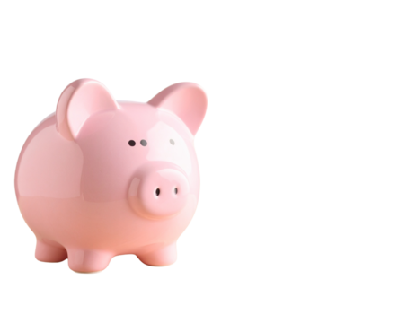 Pink piggy bank illustrating savings on transparent background