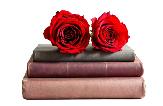 Libros y rosa roja para el Día del Libro, Sant Jordi en Cataluña. Imagen recortada, fondo transparente