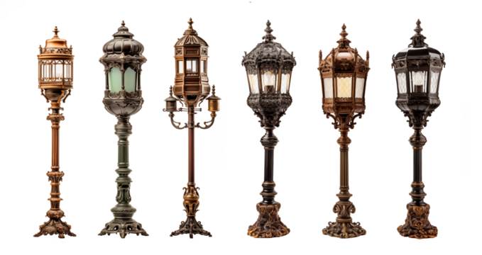 Colección de viejos postes de la lámpara de la calle o farolas