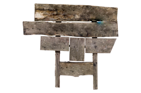 Old Wooden sign isolated on transparent background. Wood old planks sign.
