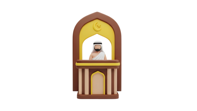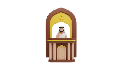 3D Islamic Man in Traditional Clothing with Crescent Moon Icon on transparent background