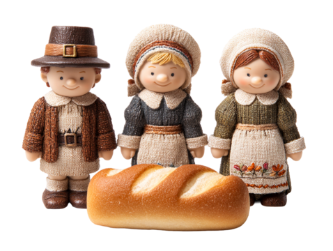 Pilgrim figures with bread loaf