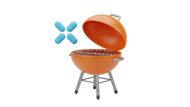 Orange BBQ Grill with Blue Pill Shapes on transparent background