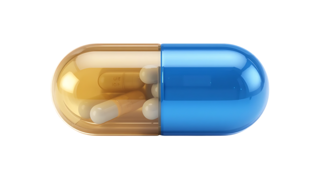 White medical pill or capsule drug isolated on a transparent background for pharmacy, medicine, and healthcare concepts