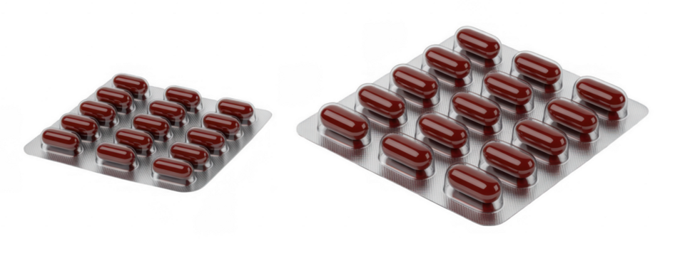 Green and white capsules arranged around cross symbol isolated on transparent background