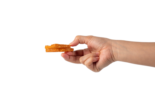 Female doctor holding and pointing at red and blue pill isolated on transparent background