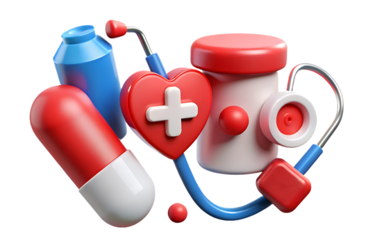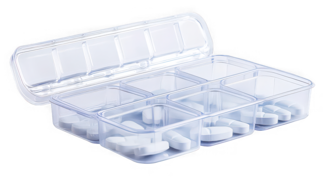 Medication Organizer with Assorted Pills and Capsules isolated on transparent background