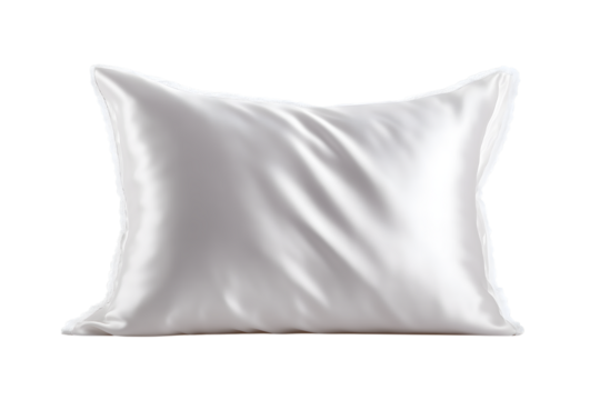 luxurious white silk pillow isolated on white background