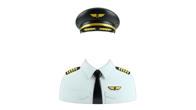 Military air force officer visor cap with gold insignia and wings isolated on transparent background