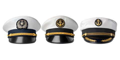 set of captain hat isolated on transparent background, cut out