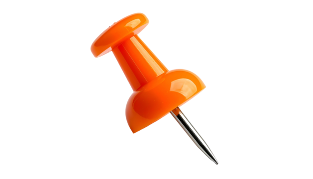 Close-up shot of an orange push pin against a black backdrop, angled with sharp point