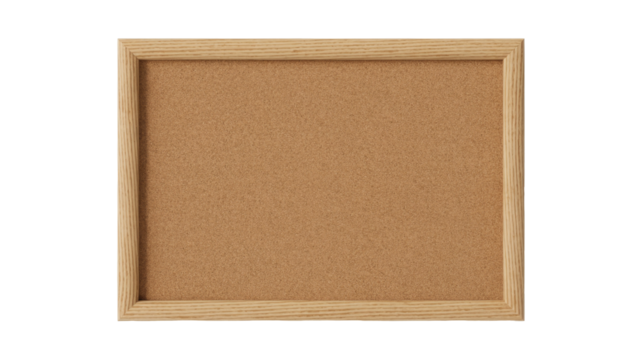 Empty Square Cork Bulletin Board with Light Wood Frame on cork board notice board isolated on a transparent background