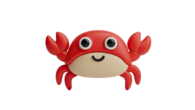 3D Cute red cartoon crab character with a happy smile on transparent background