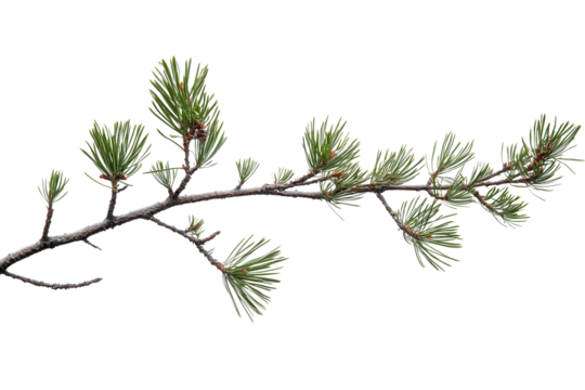 Green Christmas pine twigs and snowberries in a festive corner arrangement isolated on white or transparent background