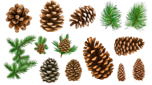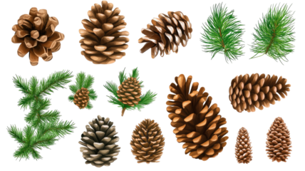 Beautiful Set of Pine Cones Illustration on White Background