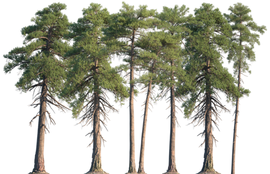 Set of Pinus contorta and Pinus heldreichii frontal set trees isolated png on a transparent background perfectly cutout