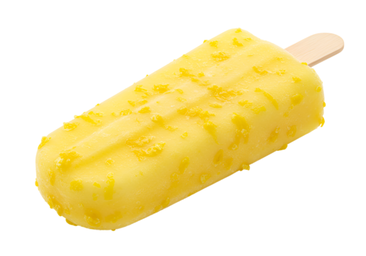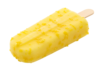 Isolated tropical fruit popsicle on a stick, yellow refreshing summer dessert treat or snack