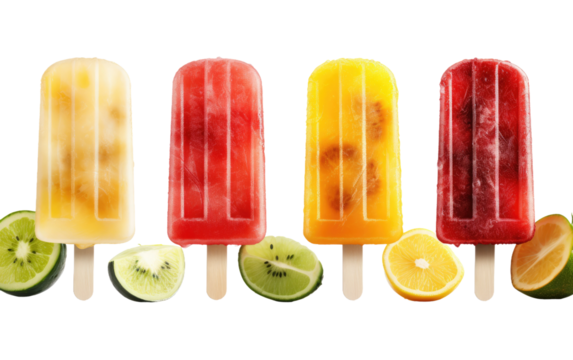 Refreshing Tropical Fruit Ice Pops on Transparent Isolated Background