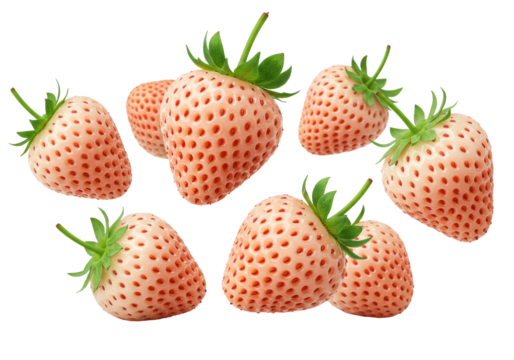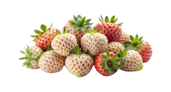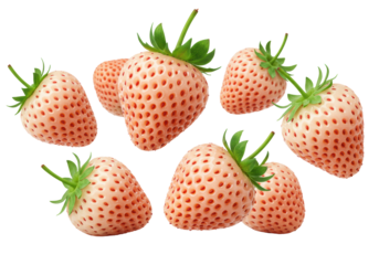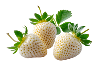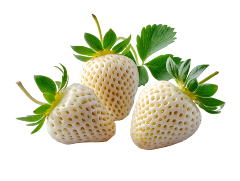 Three Pineberries White Strawberries Isolated on Transparent Background