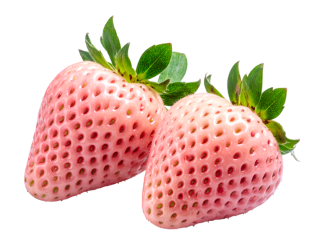 Pink pineberry showcasing a unique pale color and sweet fresh flavor, with green leaves and visible seeds on transparent background