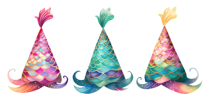 Watercolor party hats three different types on white backhround, Watercolor, Sealife, Oceanlife, decoration, Clipart, decorative elements, birthday party items