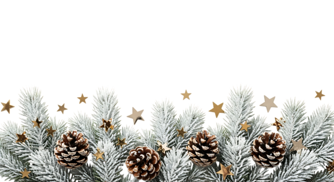 Png image of Festive christmas background featuring pine branches red ornaments stars snowflakes and berries for holiday designs and seasonal greetings cards creation on transparent background