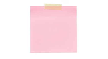 Pink sticky note attached with a binder clip on a transparent background, creating a simple yet effective visual for reminders and notes