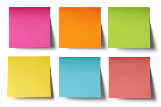 Colorful sticky notes arranged in grid isolated on a transparent background