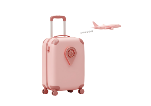 Isolated Pink Travel Suitcase with Airplane Silhouette