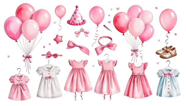 baby design shower set cartoon watercolor party invitation toy balloon elements illustration dress pink birthday girl newborn kid card cute children element greeting little collection happy nubes